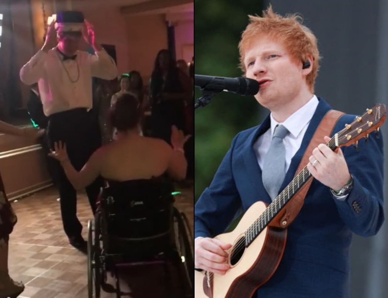 La fiesta iba de lo más normal hasta que iba a iniciar el baile de los reyes de la graduación. La reina estaba en silla de ruedas y se disponía a bailar con su pareja, justo cuando empieza a escucharse “Thinking Out Loud”.