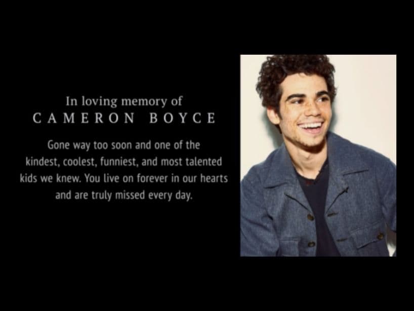 “En memoria de CAMERON BOYCE. Se fue demasiado pronto y fue uno de los niños más amables, geniales, divertidos y talentosos que conocimos”, expresa la tarjeta, junto a una fotografía donde se le ve al actor de Los Descendientes con una gran sonrisa, algo que siempre lo caracterizó.
