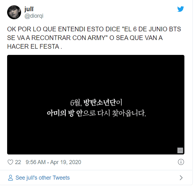 "En junio volveremos a las habitaciones de ARMY", se puede leer en el texto.