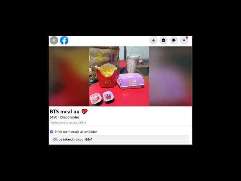 Principalmente a través de la sección de Marketplace de Facebook es donde los diferentes usuarios han ofertado los empaques especiales que llegaron a México del BTS Meal, los cuales consisten en la bilsa, el paquete de nuggets morado, el empaque de las papas y el vaso de refresco. Algunos también venden las salsas Sweet Chili y Cajún, pero lo hacen a un costo extra.