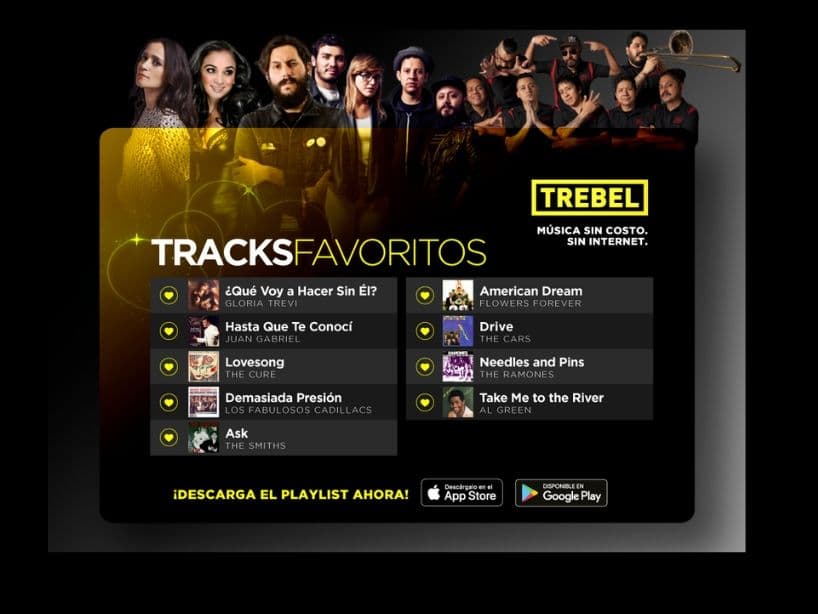 ¿Quieres escuchar algunas de las canciones que estos famosos seleccionaron? Puedes hacerlo en Trebel, la única app en el mundo para escuchar música sin costo ni Internet, lo que le permite al usuario escuchar sus canciones cuando y donde quiera.