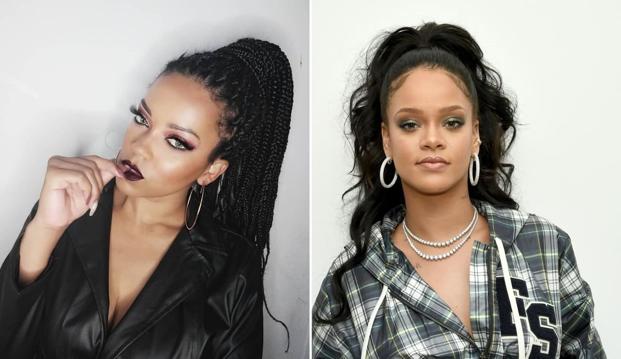 Y es que las similitudes entre la “doble” de Rihanna y la estrella de pop son tantas que cualquiera podría confundirse; se parecen desde en el color de ojos, la mirada, la forma de la cara, el cabello, los labios, las cejas… todo.