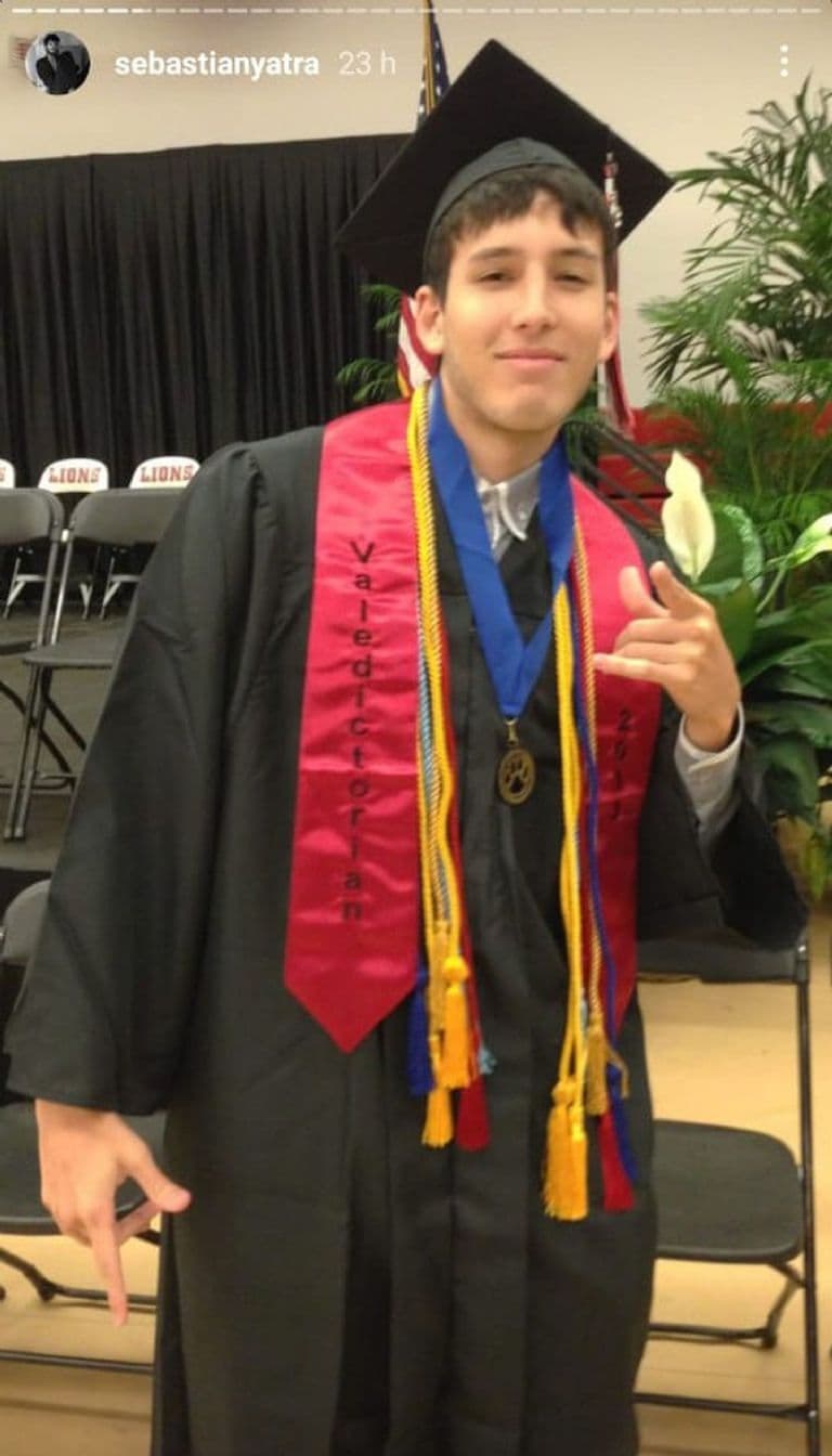 En realidad le habían pedido a Sebastián Yatra una fotografía de cuando él había salido de la primaria, pero como no encontró, decidió mostrar una de su graduación de bachillerato, con toga y birrete.