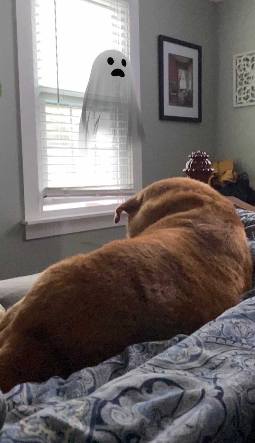- Mueve la cámara por diferentes lados hasta que encuentras al fantasma.