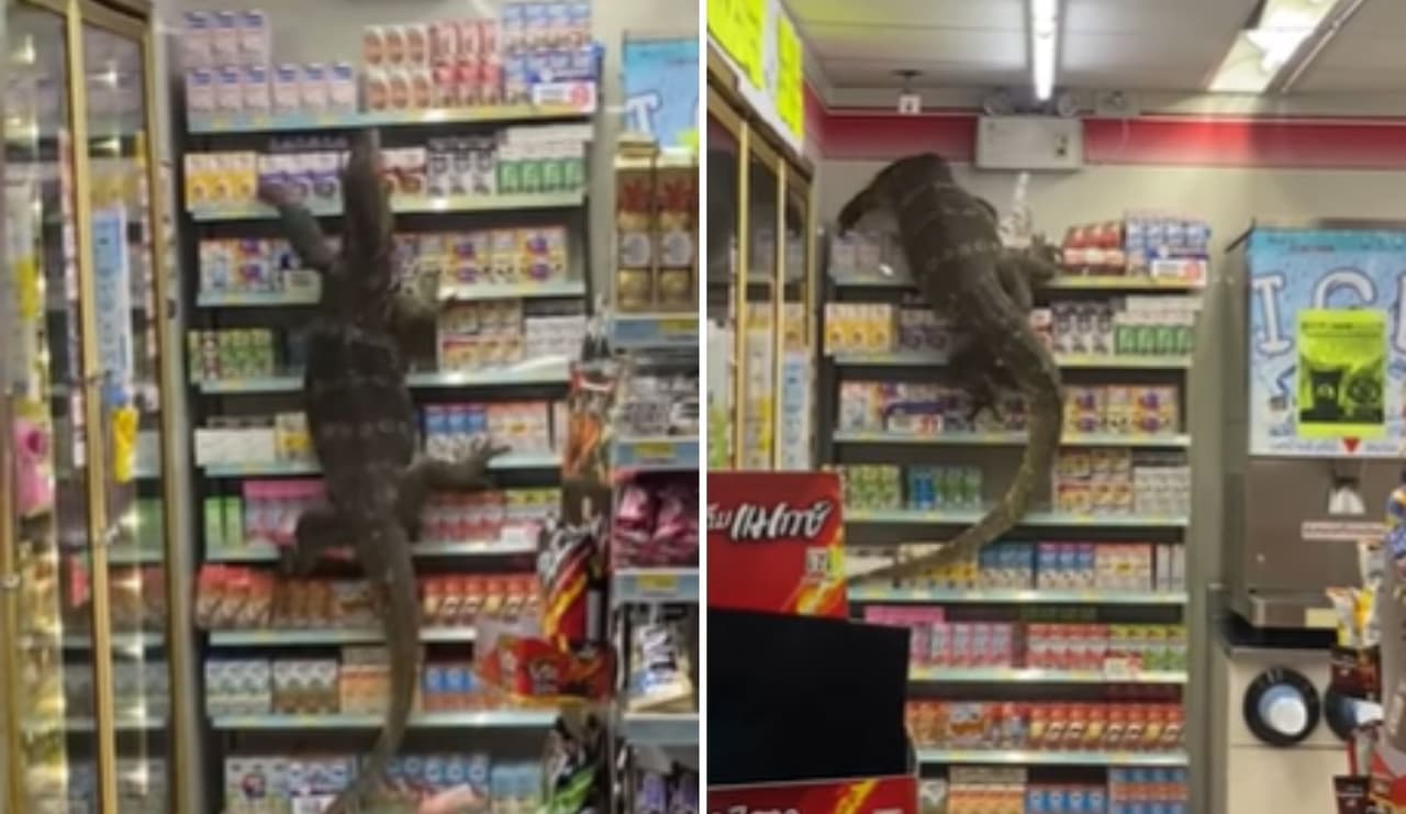 ¿Te imaginas ir a la tiendita por unas papitas y encontrarte a un lagarto de dos metros subiendo uno de los estantes? Pues esto pasó en Tailandia, donde un gigantesco reptil aterrorizó a varios clientes cuando fue visto invadiendo un Seven Eleven, dejándonos un impresionante video viral.