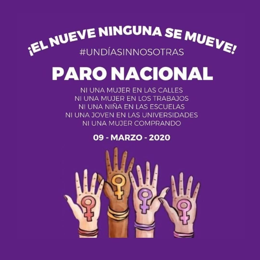 Este 9 de marzo se convocará a un paro nacional para visibilizar los problemas de violencia de género, feminicidios, y acoso sexual en México: “Ni una mujer en las calles, ni una mujer en la escuelas, ni una mujer en los trabajos”, expresa la iniciativa.