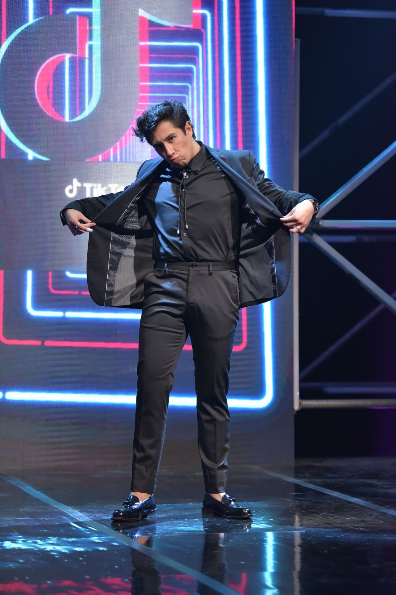 El comediante que se ha ganado el cariño de muchos por sus interpretaciones en TikTok, optó por un look bastante serio completamente negro que incluía unos guantes del mismo color. Con una chamarra gruesa y sin sus características pelucas, pudimos ver a Paco en la alfombra y en el sketch con el que abrió el live del evento.